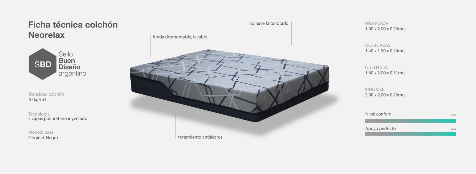 El diseño del colchón otorga la firmeza ideal que tu cuerpo necesita para un buen descanso.